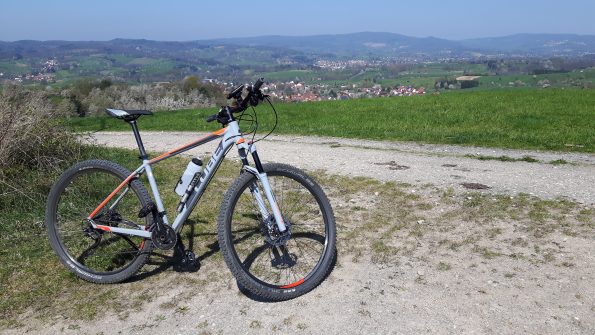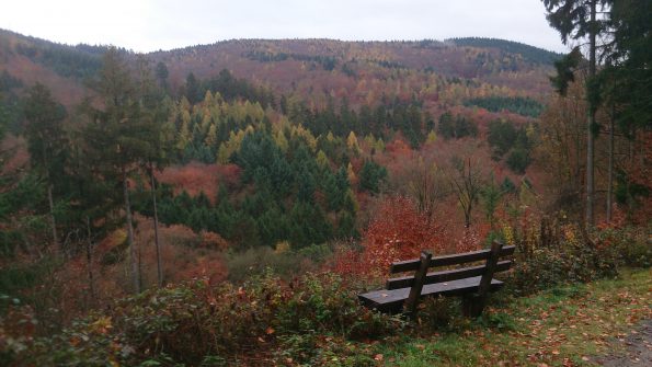 MTB Strecke „Rimbach1“ Voll ausgeschildert hier oberhalb mit Blick auf Zotzenbach. Die Strecke verläuft 200 m parallel vom Drachenhaus und man kann ein paar Meter vom Drachenhaus „einsteigen“.