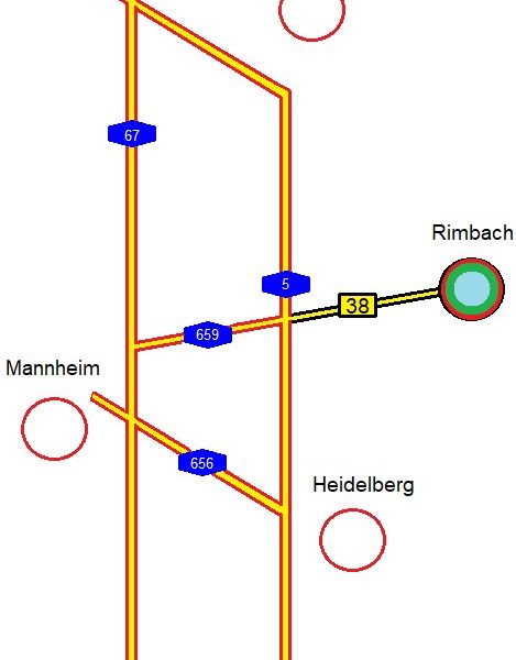 An der großen Kreuzung- hinter Mitlechtern- halten Sie sich Richtung Rimbach.